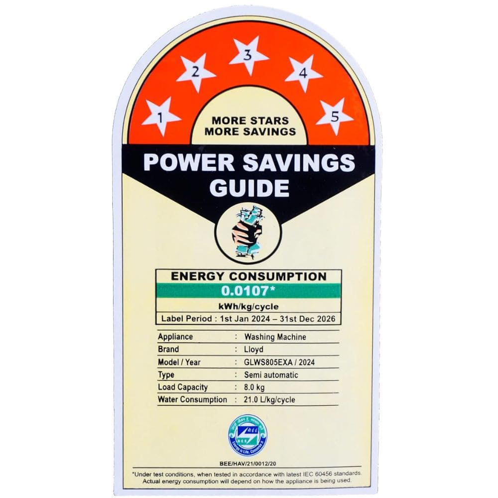 Lloyd 8 Kg 5 Star Semi-Automatic Top Load Washing machine (GLWS805EXAPC, Plum Cola & Black)