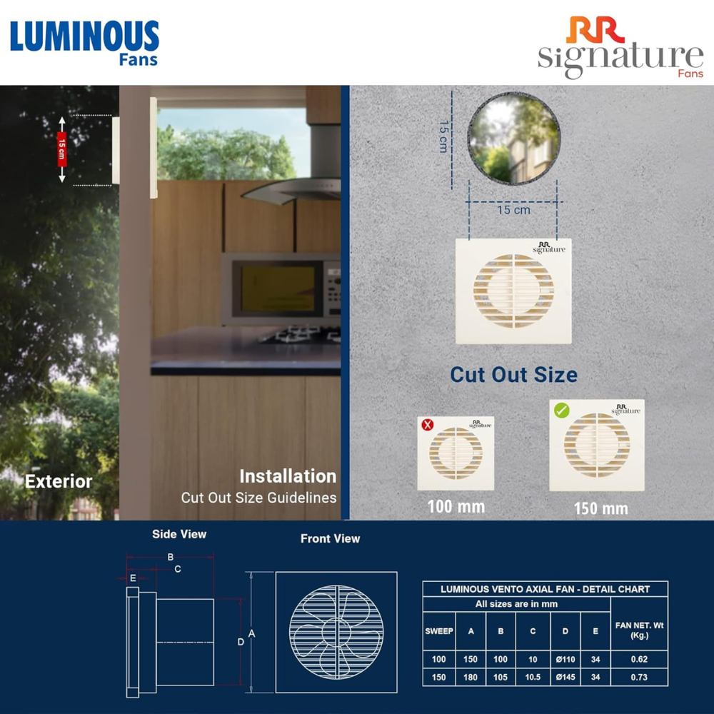- Compact Design: Luminous vento axial is thoughtfully designed to be compact to make it suitable for smaller areas while providing an elegant appearance