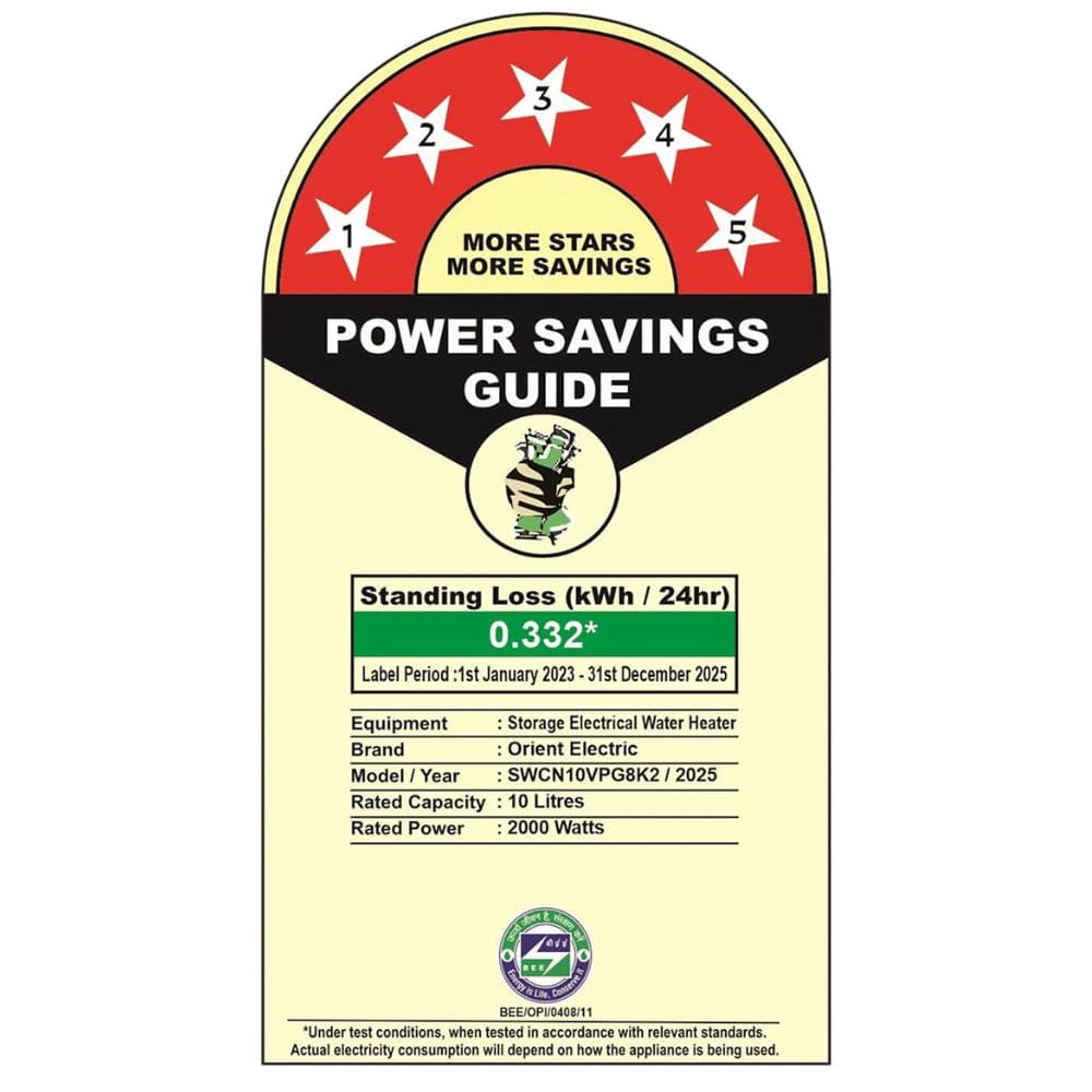 Orient Electric 10 Ltrs Vertical Storage, 5 Star Water Heater Geyser (Aquator Neo 10L)