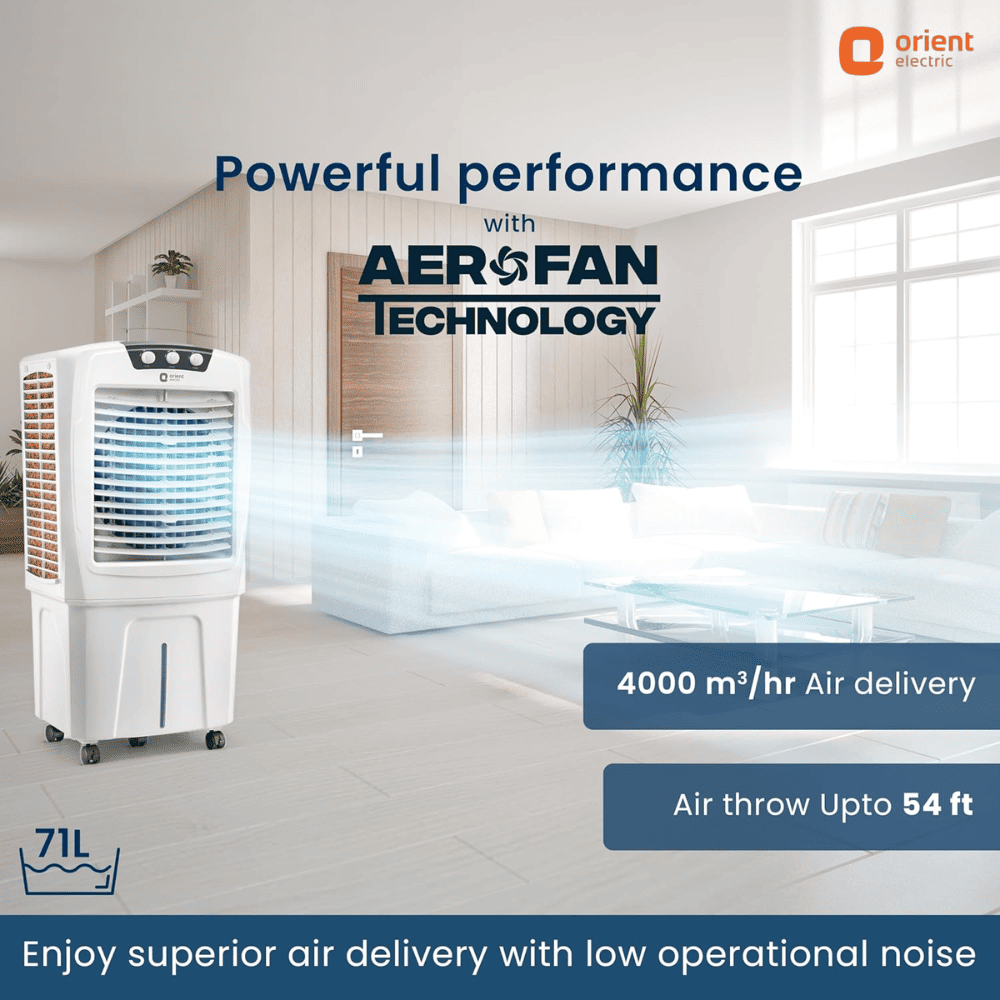 - Powerful airflow with Aerofan technology: The air cooler offers high airflow of 4000 m3/ hour with its unique Aerofan technology that ensures high air thrust and low operational noise.