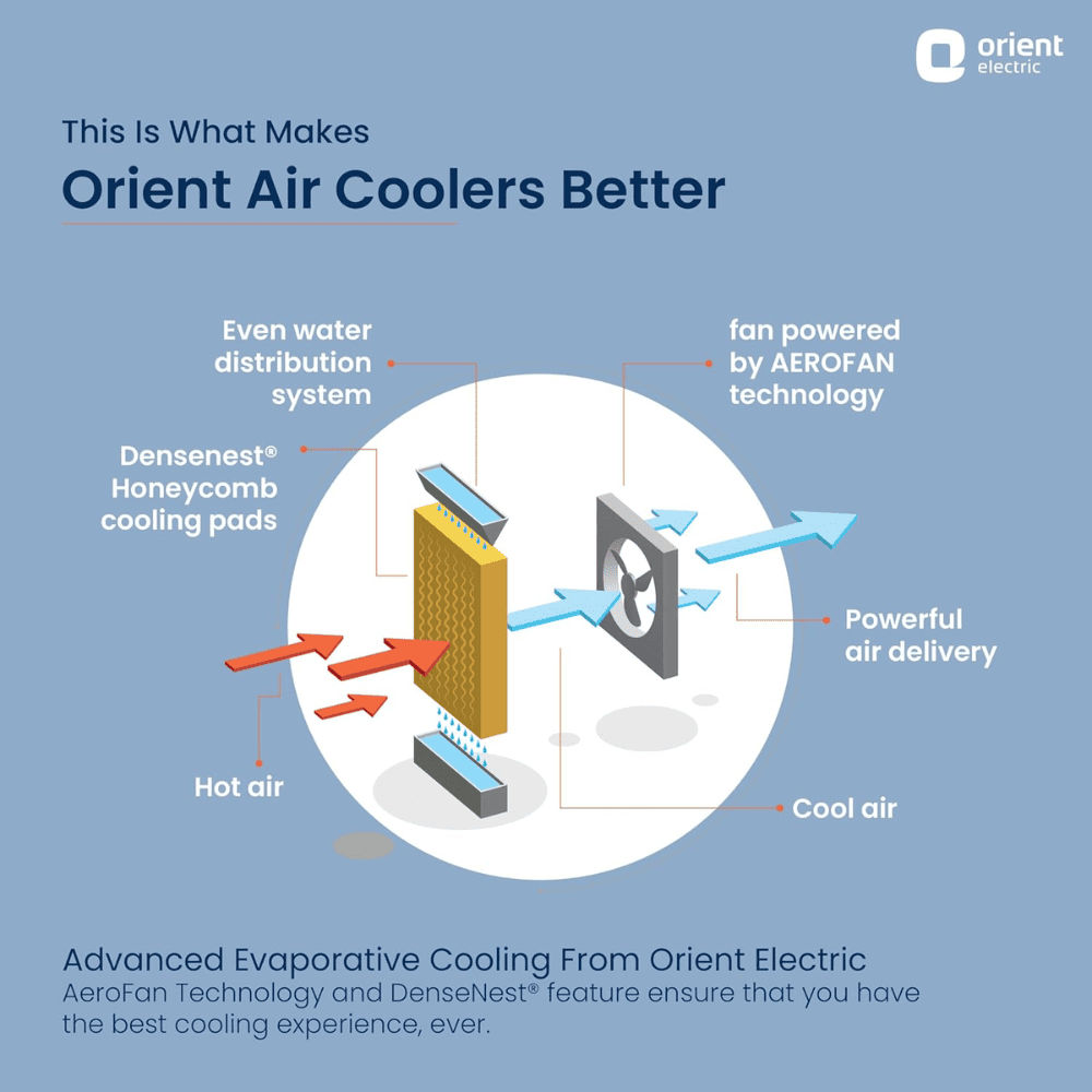 - 3-side Densenest Honeycomb cooling pads: With unique 3-side Densenest Honeycomb pads that retain 45% more water, our air cooler for room gives 25% extra cooling, keeping you comfortable even during peak summers.