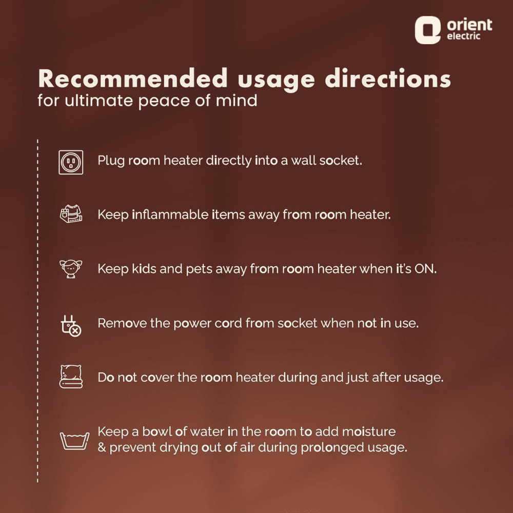 - Compact in size, Easy to move around: Experience convenience at its best with Orient’s blower heater for home that boasts a compact size for effortless portability. Move it around your house and take warmth where you want.