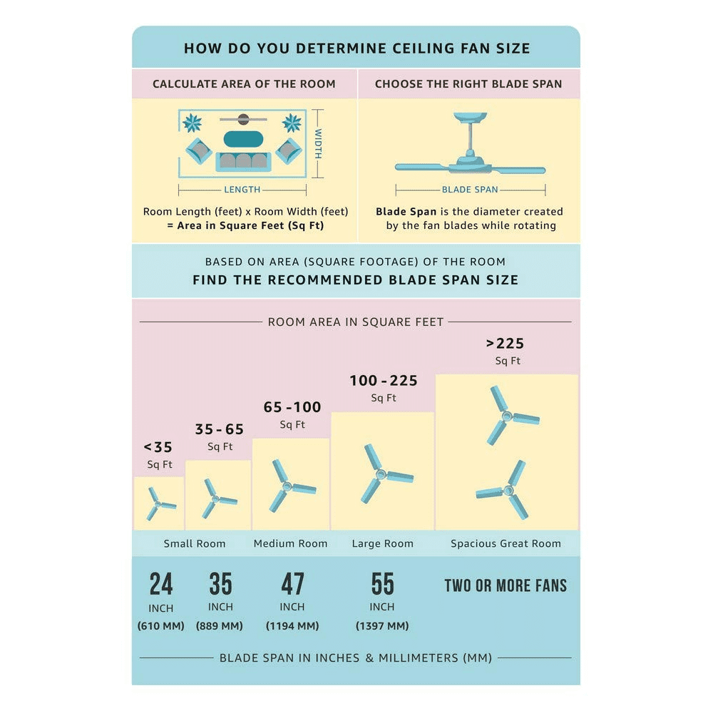 - 1200 mm Sweep The three wide blades having a sweep size of 1200 mm offer high air delivery at up to 320 RPM, which is sure to fill your space with sufficient air in no time.