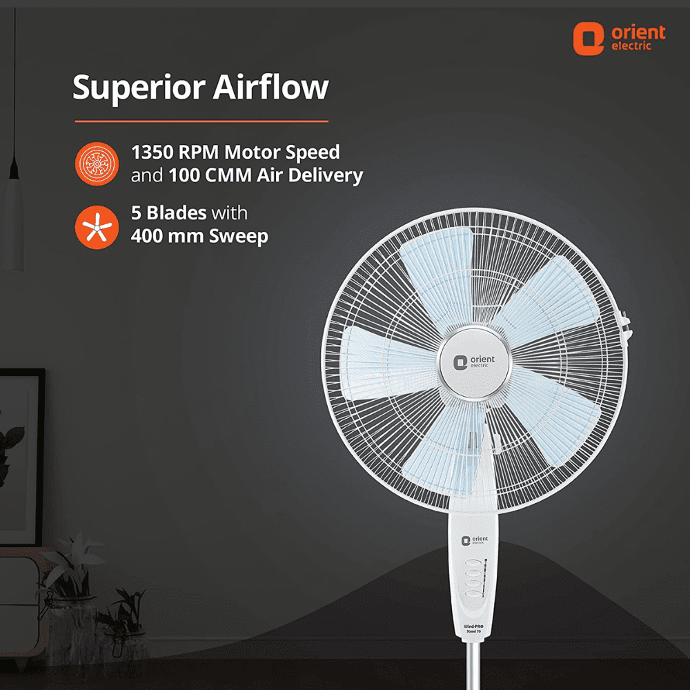 Orient Electric Wind 70 Pro, 400mm 5 Blade Pedestal Fan