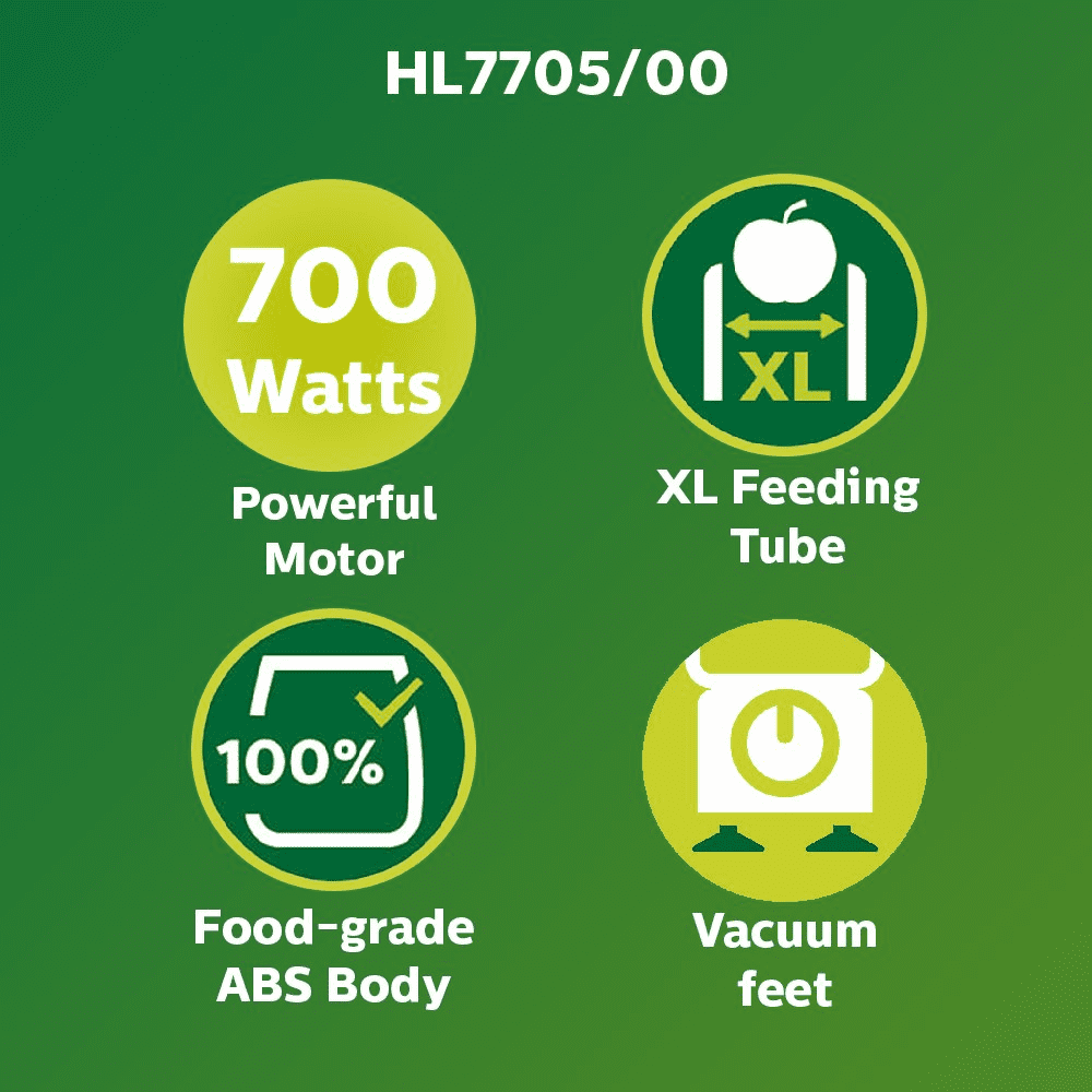 Powerful Motor, Pulp Control, Drip Stop Spout, Removable Blade, Removable Spout, Overload Protection, Non Slip Feet, Clamp Lock