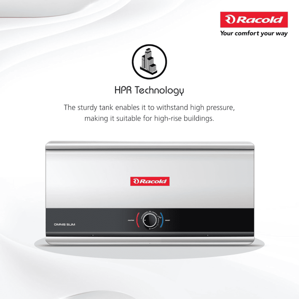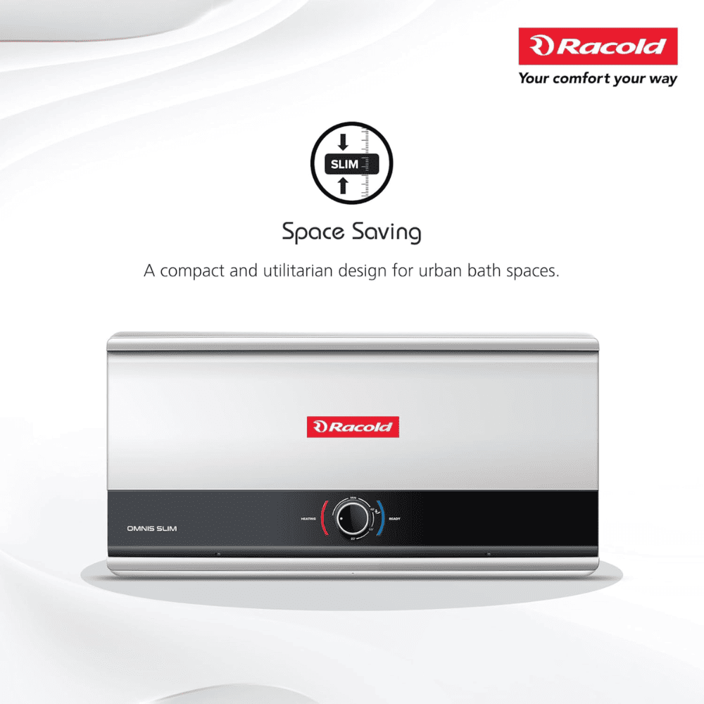Racold 15 Ltrs Horizontal Storage Wall Mounting Water Heater Geyser (Omnis 15L Slim, White)