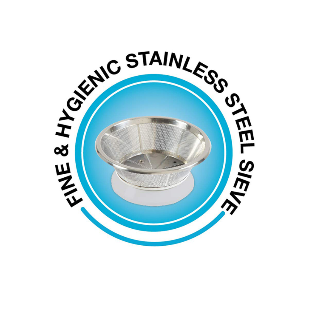 - 5 Stainless Steel Sieve : This keeps your juice clean and lasts a long time.