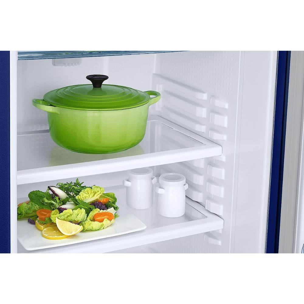 - Direct Cool Refrigerator: Stylish Single Door Refrigerator with Modern Camellia Blue pattern. Enjoy powerful cooling that can last longer