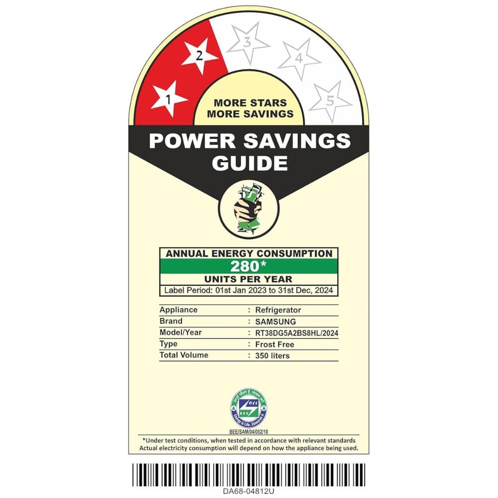Samsung 250 Ltrs 2 Star, Digital Inverter Frost Free, Double Door Refrigerator (RT38DG5A2BS8)
