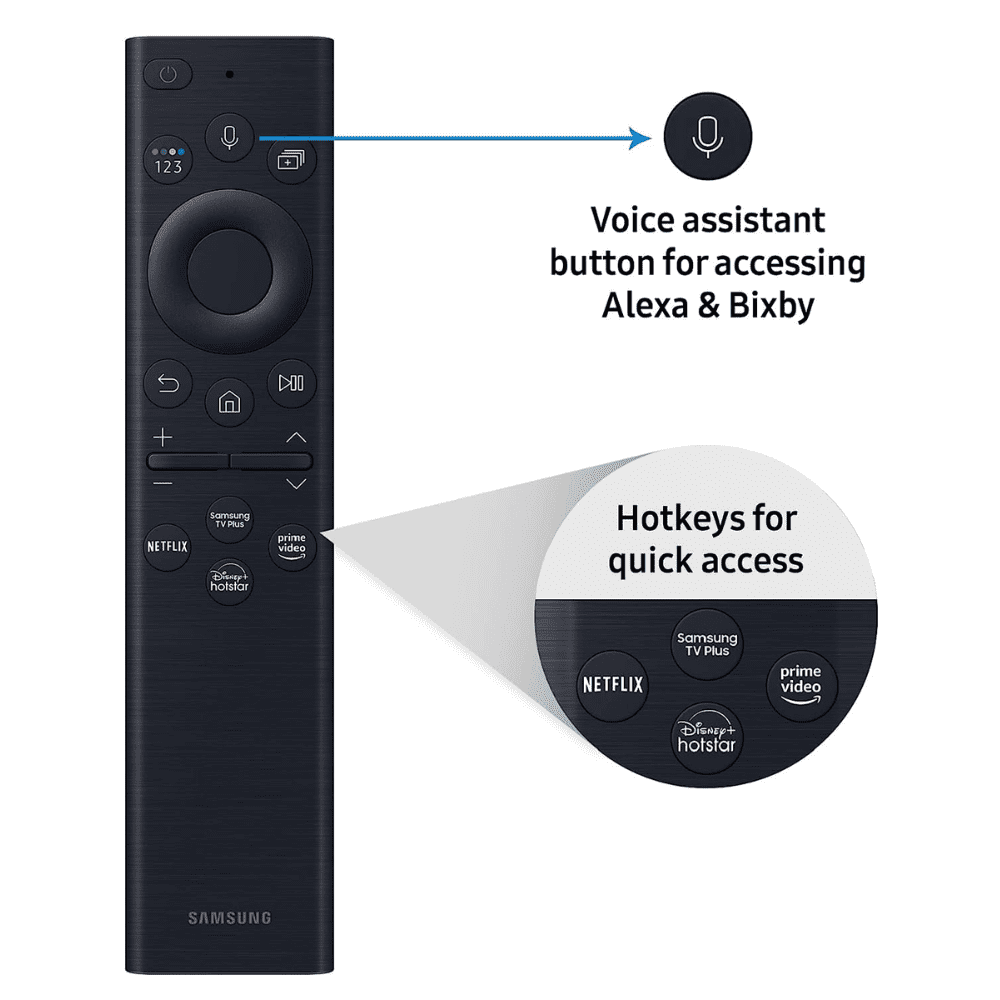 Smart TV with Multiple Voice Assistants : Integrated Bixby, Alexa, and Google Assistant for voice control.