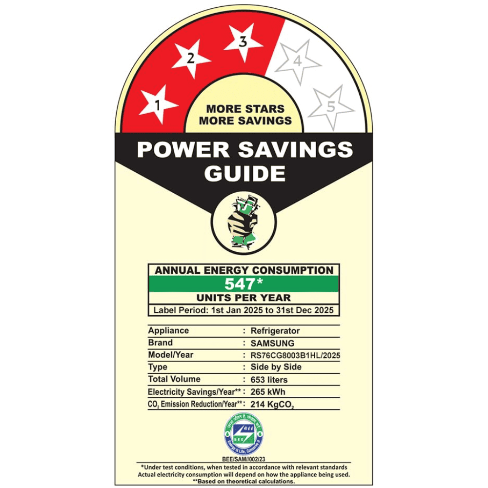 Samsung 653 Ltrs 3 Star, Inverter Frost Free, Side-by-Side Refrigerator (RS76CG8103B1)