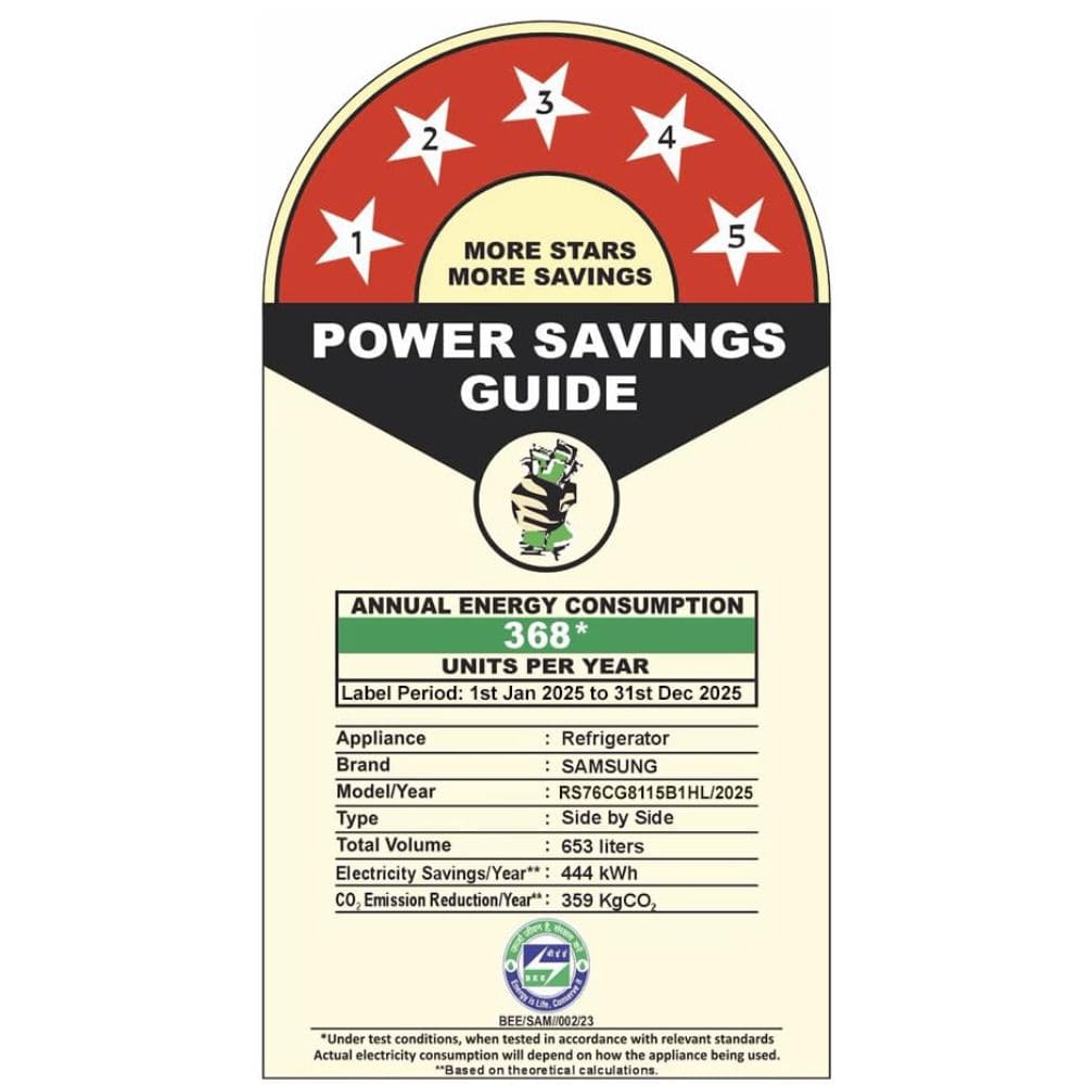 Samsung 653 Ltrs 5 Star, Inverter Frost Free, Side-by-Side Refrigerator (RS76CG8115B1)