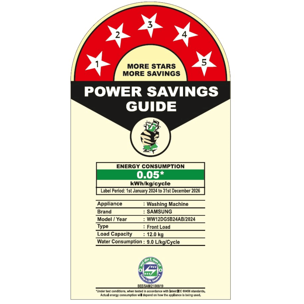Samsung 12 Kg 5 Star Fully-Automatic Front Load Washing machine (WW12DG5B24AB,Black)