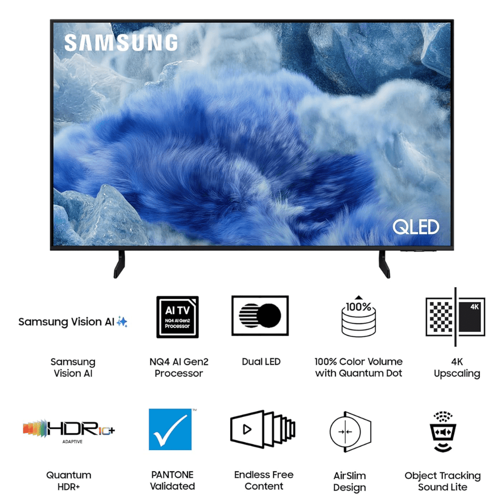 Q4 AI Processor | 100% Color Volume with Quantum Dot | Samsung Knox Security | Endless Free Content | 4K Upscaling