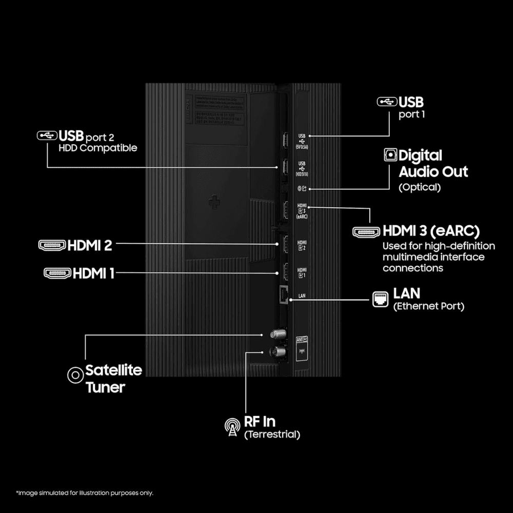 - Slim AirSlim design with thin bezels for a modern look. There are three HDMI ports, two USB ports, Wi-Fi, and Bluetooth v5.3.