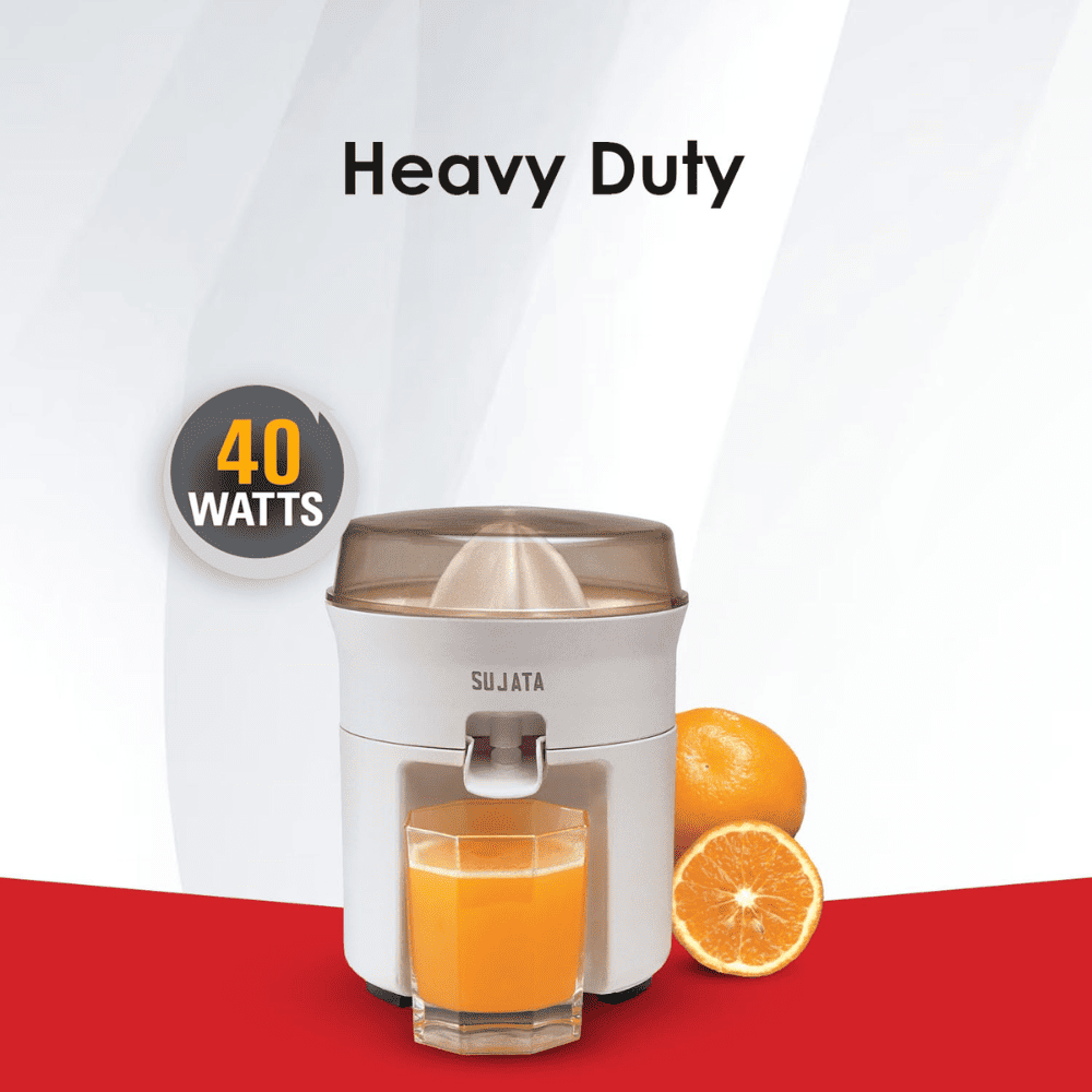 - 40-Watts Motor: Sujata Citromatic citrus juicer is powered by a robust 40 Watts motor, offering efficient and swift juice extraction for all your citrus fruits