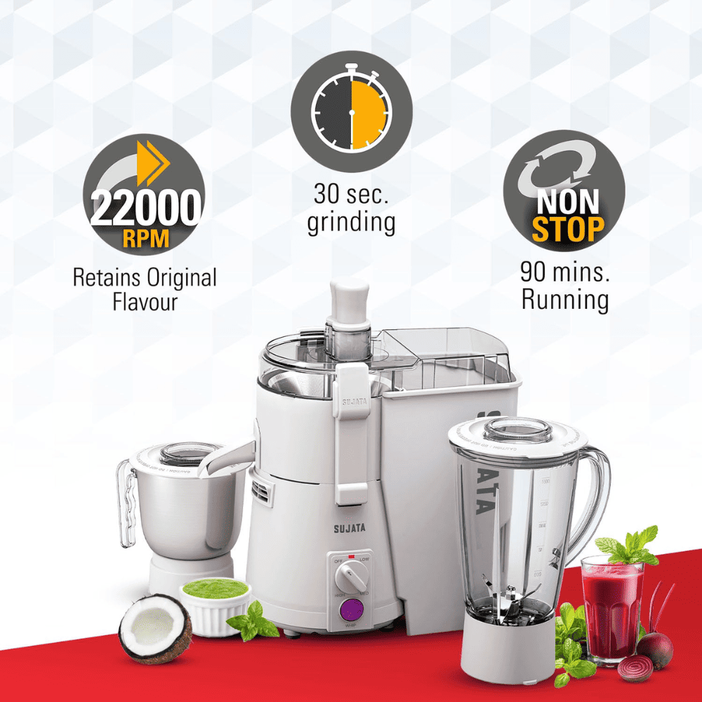 - India's top-selling Juicer Mixer Grinder: The Sujata Powermatic, acclaimed as India's top-selling Mixer Grinder, is a kitchen essential known for efficiently handling heavy-duty tasks. With its remarkable speed, it has become the preferred choice for household use, delivering quick results in seconds.