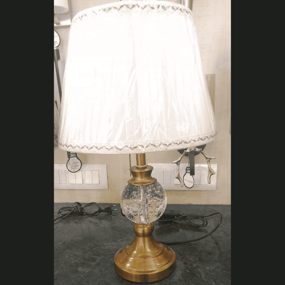 - Shades : Constructed with fabric shades and a bronze metal base,a delicate glass ball in the middle with LED light. A lovely, inexpensive, and practical table lamp to meet your basic fashion Lighting needs. This table lamp will enhance the interiors of your space