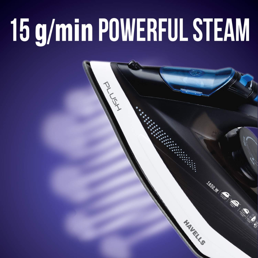 Havells Plush blk, 1600 Watts Steam Iron Press with Steam Burst Anti Drip Function (Black)