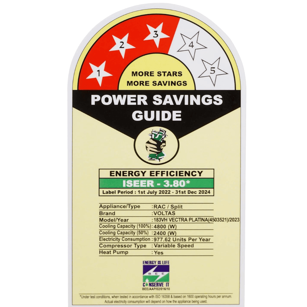 - Energy Rating: 3 Star. Annual Energy Consumption: 977.62 kWh/year. ISEER Value: 3.8