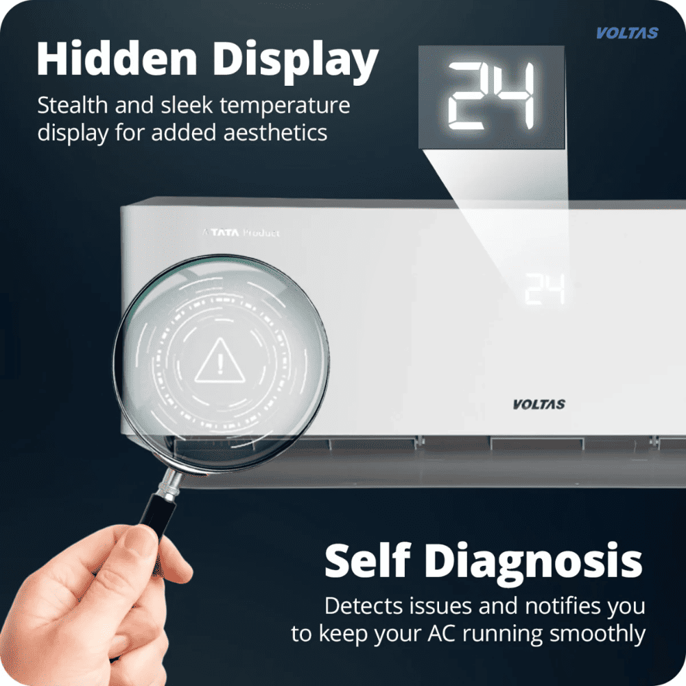 - Key Features: Stabilizer free operation within 145 ~ 270 voltage range; Hidden Digital Temperature Display type on IDU and timer modes; Noise Level: 51 / 49 / 46 / 44 dB.