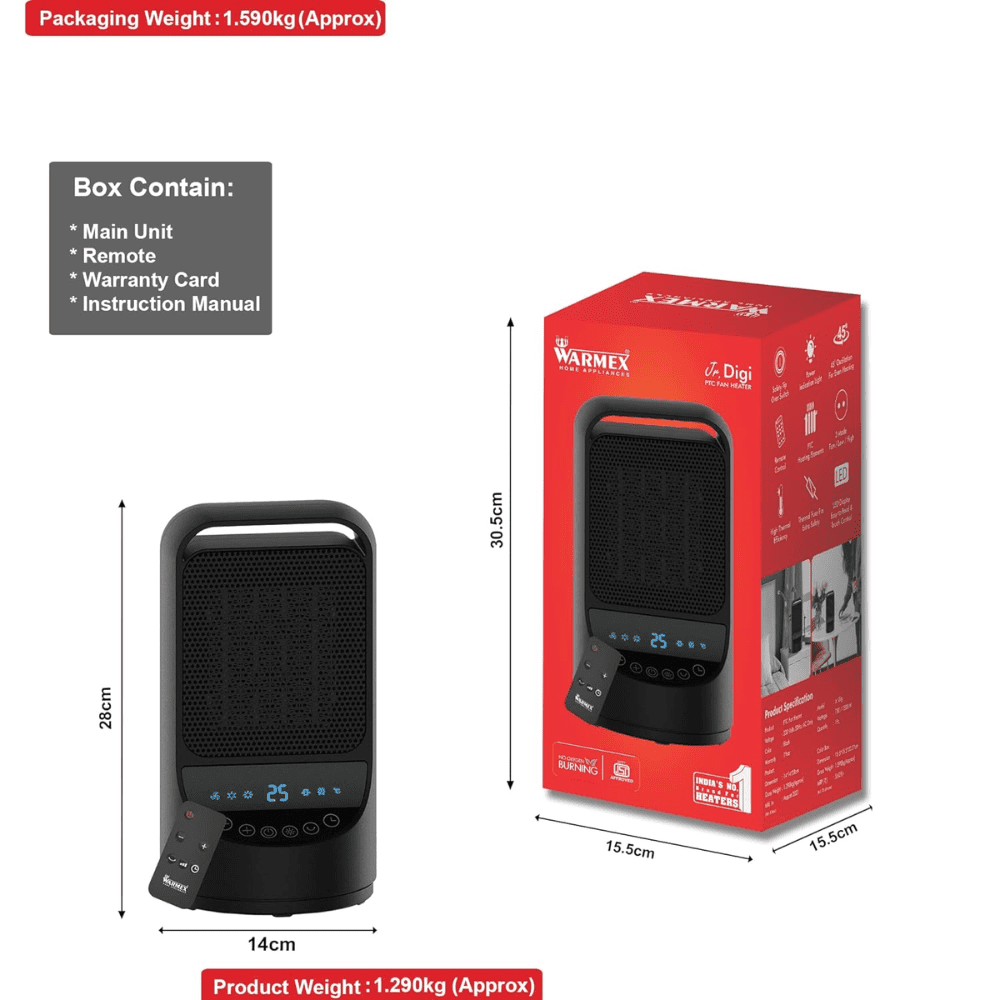 - TOUCH DISPLAY WITH FAN MODE – Featuring An Easy-to-use Touch Display, The Warmex Electric Room Heater Allows You To Effortlessly Control All Settings For A Personalized Heating Experience. The Integrated Fan Mode Enhances Air Circulation, Ensuring That Warmth Is Evenly Distributed Throughout The Room. Whether You Need Targeted Heat Or A More Balanced Warmth, This Versatile Heater Adapts To Your Needs, Making It Perfect For Any Setting—be It Your Bedroom, Office, Or Small Living Space.