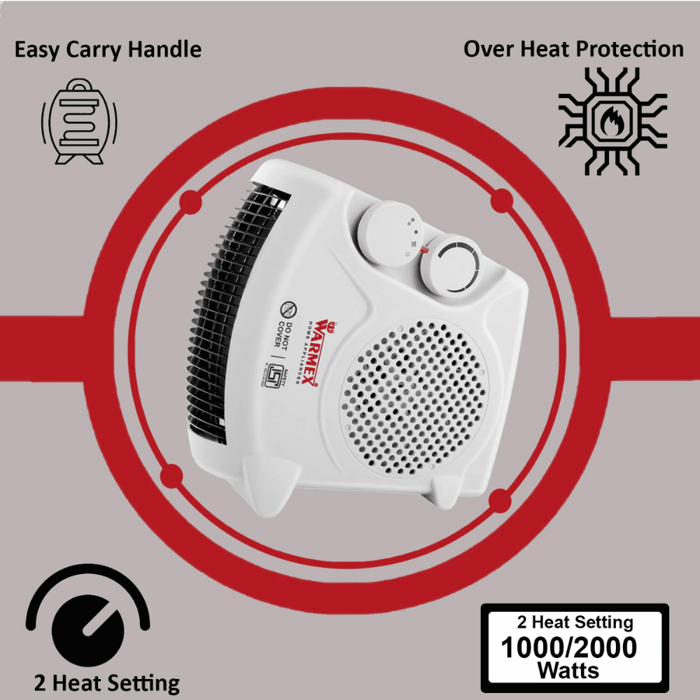 - The Warmex Fan Heater FH-09 can effectively heat any given surrounding at adjustable temperatures. This product greatly helps to keep you warm during winters. Economically designed, the Warmex Room Heater consumes 1000/2000 Watts. To prevent overheating, the heater comes with a safety switch that automatically shuts it off, before it can overheat. This switch also cuts off the heater in case it falls or tips over. Make your winters warm and cozy with this smart room heater.