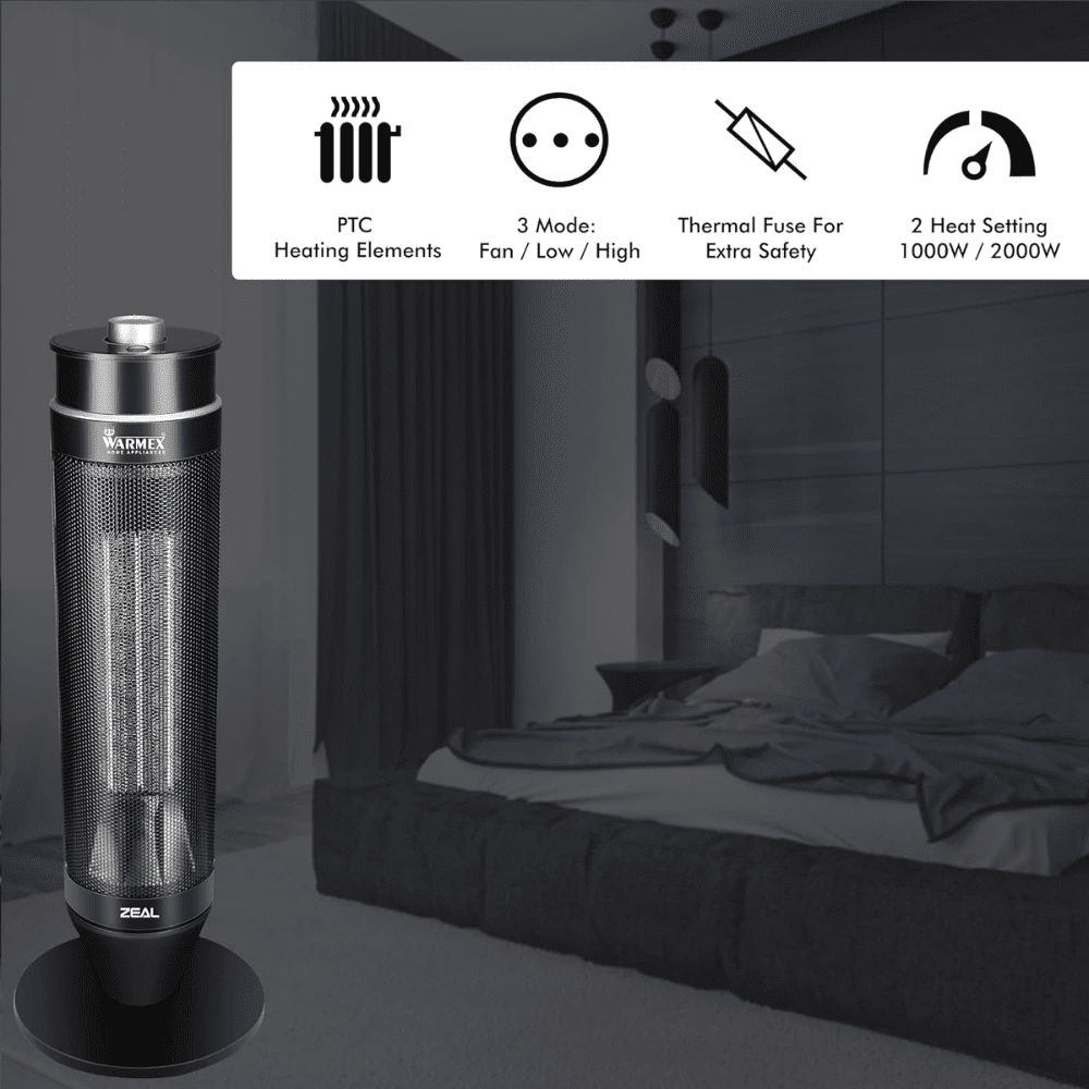 - FAST HEATING WITH 2 HEAT SETTINGS : The Warmex Zeal Tower Heater has two heat settings, 1000w and 2000w, so you can get warm quickly and well. You can change the heating setting to suit your needs, whether you want a moderate warmth to keep you comfortable or a strong heat to quickly warm up a big area. This heater is great for quickly warming up any room in your home or office so you can feel comfortable right away. You won't have to wait outside in the cold anymore.