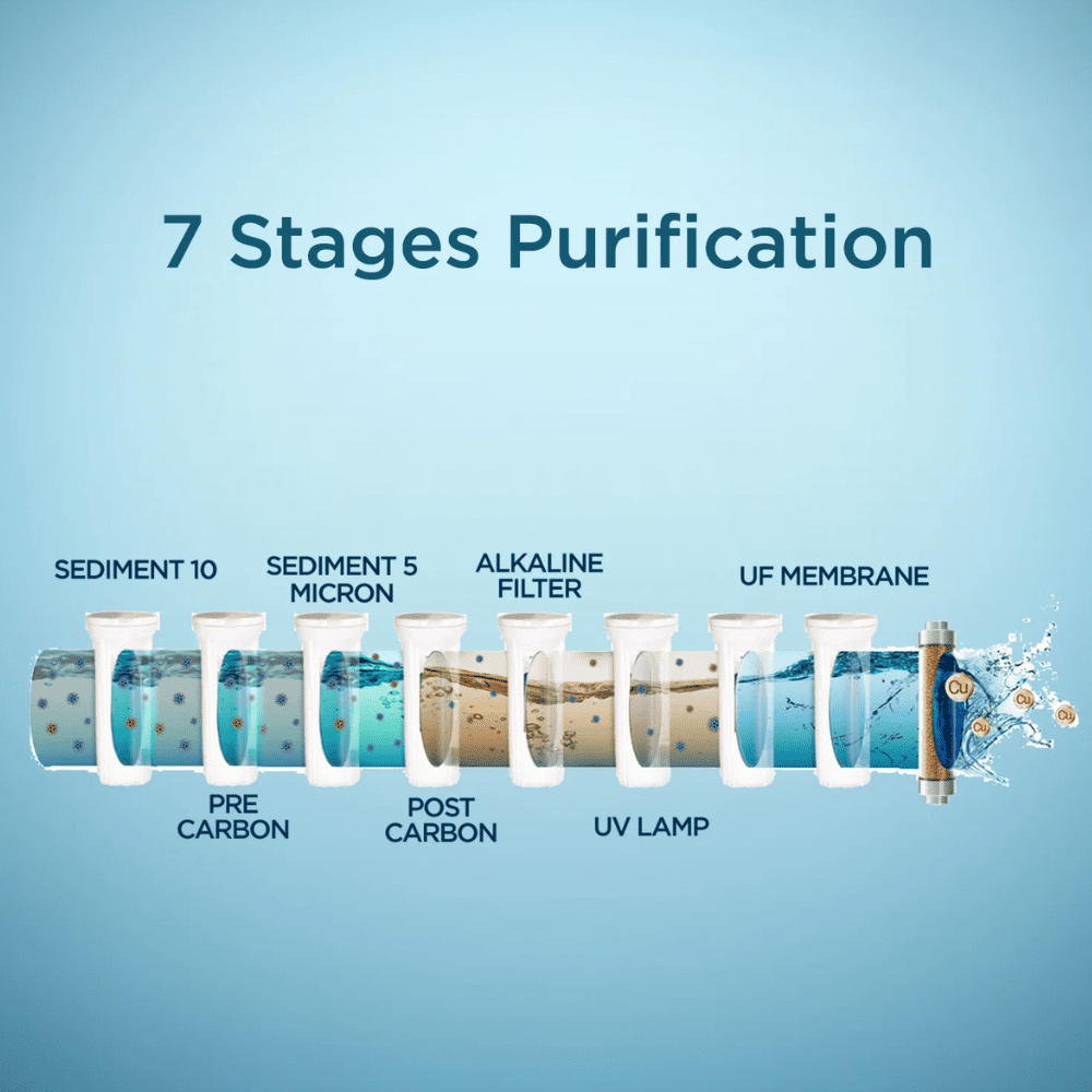 You can consume safe and clean water with the help of the XUV 8000 Water Purifier. With its alkaline filter, this water purifier enhances the alkalinity of water by increasing its pH level. Additionally, courtesy of its up to 7 stages of purification, including UV + UF, and pH enhancer, this water purifier offers purified and sweet drinking water.