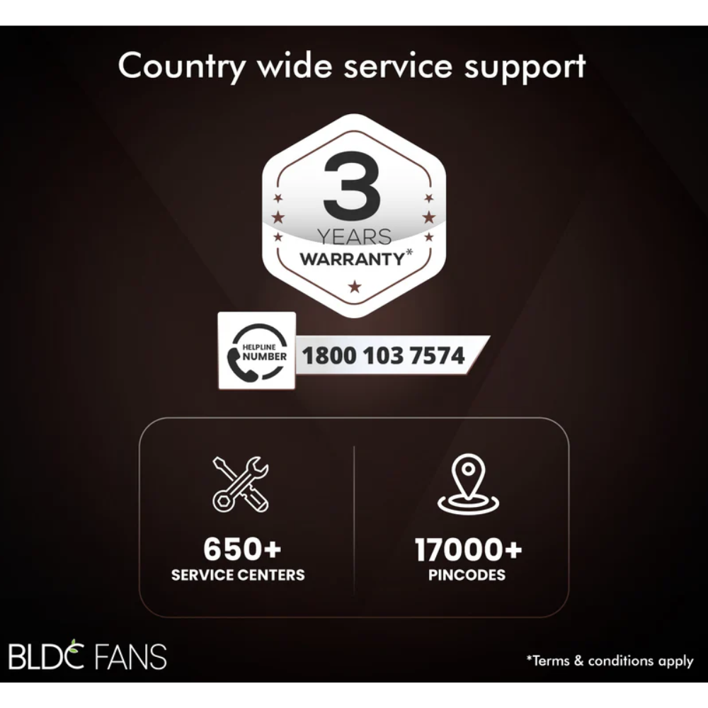 - 3-YEAR WARRANTY AGAINST MANUFACTURING DEFECTS: Built to last long, this BLDC fan comes protected against manufacturing defects with a 3-year warranty, offering you the ultimate peace of mind.