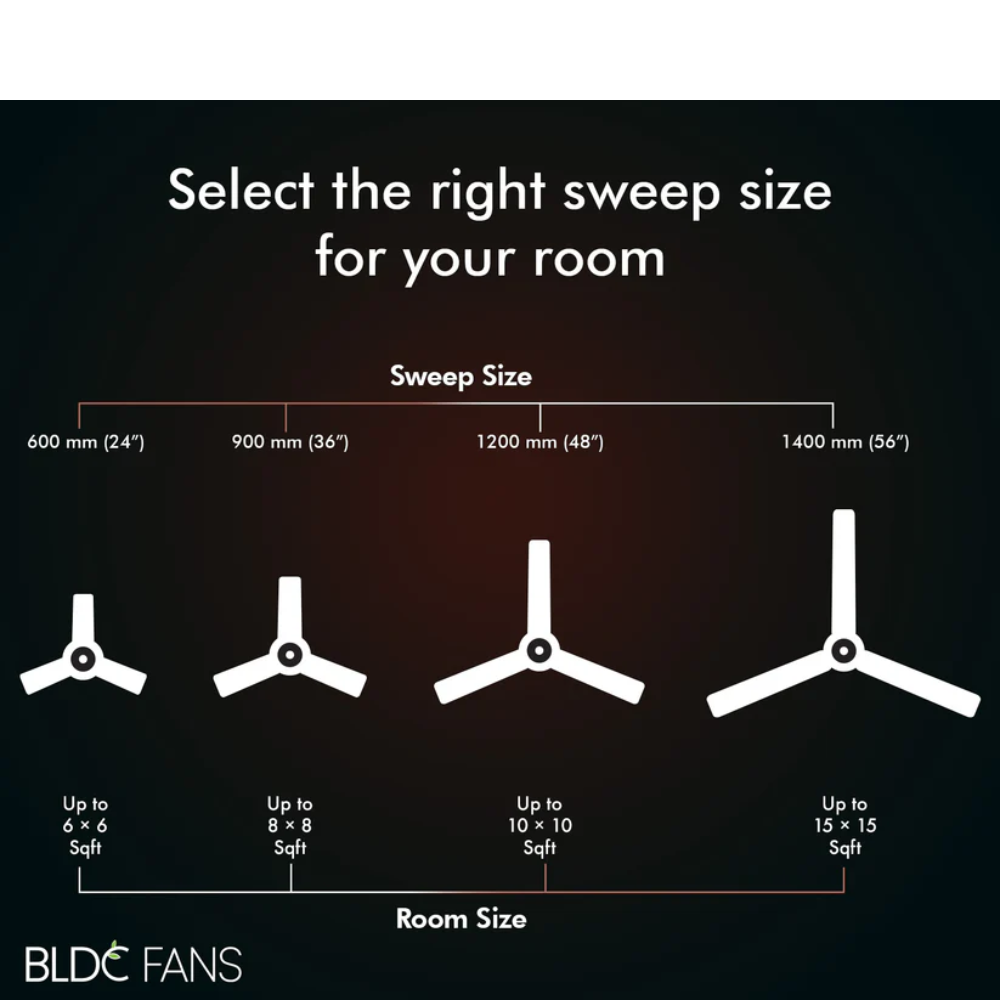 - WIDE-TIPPED ALUMINIUM BLADES FOR HIGH AIR THRUST: The blades of the ceiling fan feature wide tips for high airflow. The BLDC ceiling fan comes with 230 CMM air delivery to keep your room breezy.