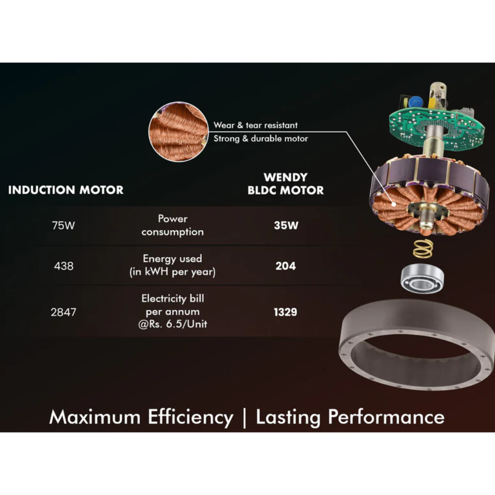 - RUNS 2X LONGER ON INVERTER: The BLDC fan consumes 50% less energy than an induction fan and runs 2X longer on inverter, delivering consistent airflow. If your area faces frequent power outages, this fan is the perfect solution to your power cut woes.
