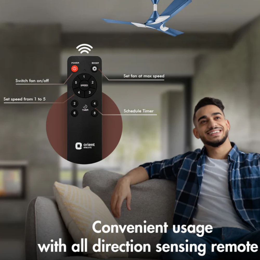 - CONVENIENCE OF ALL-DIRECTION SENSING REMOTE: Control your fan’s operation without having to point the remote directly at it. You can change speed, activate boost mode, set a timer, and turn this remote-controlled fan on/ off, as per your convenience.