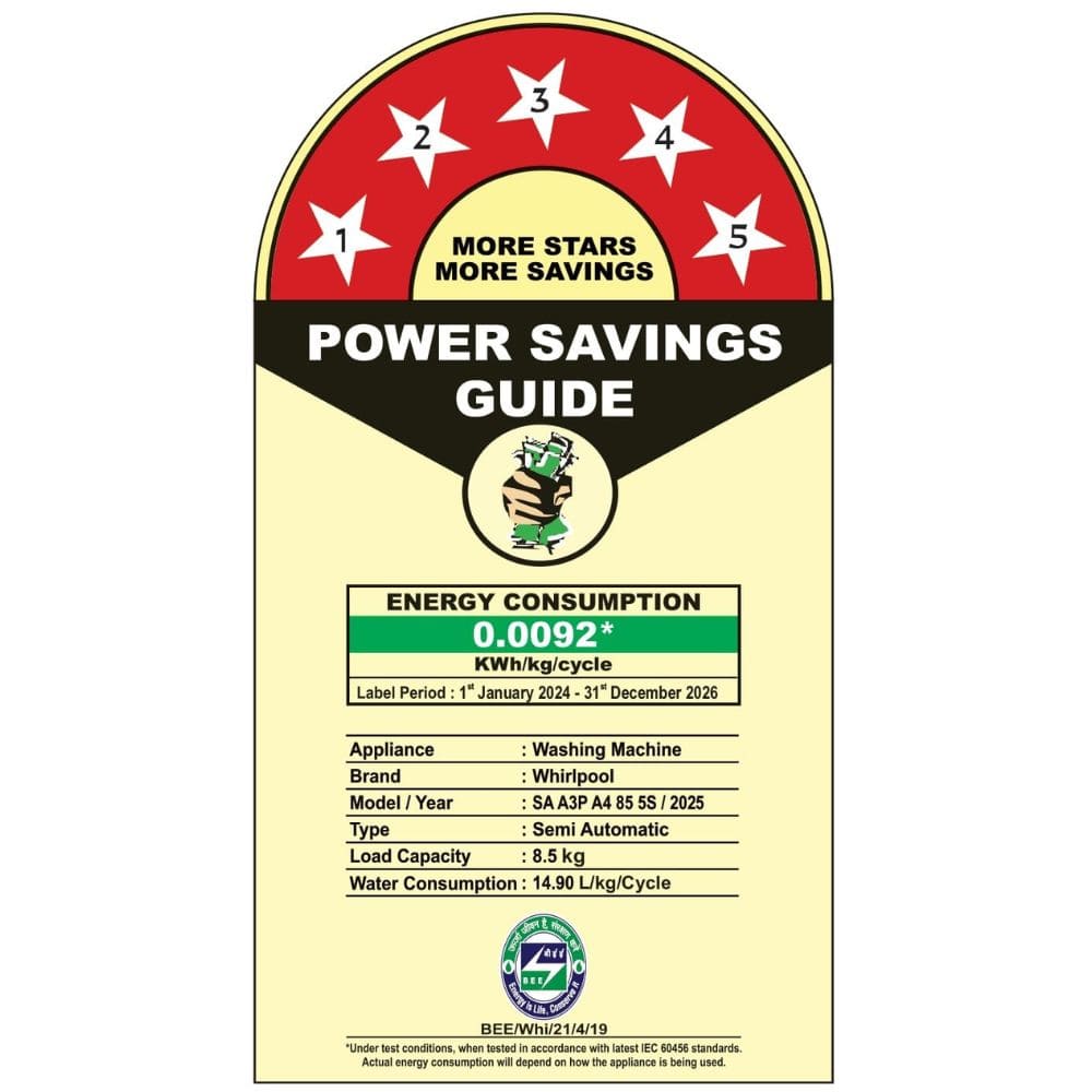 - Capacity : 8.5 kg (Suitable for Small to Medium sized family)