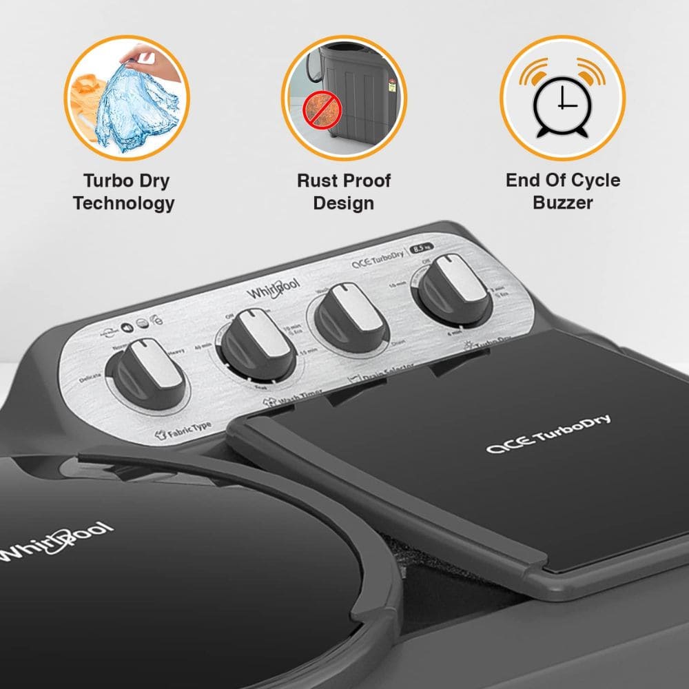 Whirlpool 8.5 Kg 5 Star Semi-Automatic Top Load Washing machine (ACE 8.5 TRB DRY XTRAA DZL 10Y, Grey)