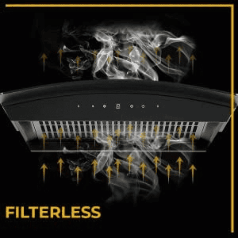 - Filterless Chimneys are fitted with sealed motor to ensure that oil deposit and water vapour’s does not affect the smooth functioning of the motor.